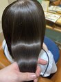 カットは結べるギリギリの長さのボブにしました。カラーはマニッシュオリーブを使ってカラーしました。トリートメントは内側と外側の両方をケアできるジャリルトリートメントと表面のツヤを出す超音波トリートメントをしました。