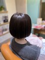 こちらのお客様はカラーの退色がしやすいお客様です。今回は落ち着いた明るさのグレージュで染めました。カットは顎ラインのボブにしました。トリートメントはカラーの残留アルカリを除去するアフタートリートメントをしました。