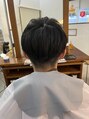 スクールカット全体的に毛量が多く、頭頂部、前髪の毛量が多かったので沢山すいて軽めに仕上げました。ワックスでスタイリングしてます。