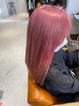 ダブルカラーピンクベージュケアブリーチハイトーンロング前髪
