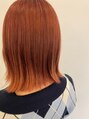 ダブルカラーオレンジベージュケアブリーチハイトーンミニボブ