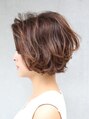 ボブベースにレイヤーをプラスしてまとまりつつも動きのあるショートボブスタイルです。日本人の特徴であるハチ張りをカバーしたスタイルで、小顔効果はもちろん、セットが楽なのも◎カラーは8レベルのクリアブラウンで髪のツヤを強調してくれます。