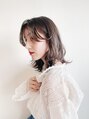 ミディアムレイヤースタイルに長い前髪はクールな印象に。