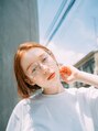 ベビーオレンジが似合うシンプルなボブ。スタイリングはバーム仕上げで簡単なのでヘアカラーで楽しみましょう。大人カラーでも似合います。