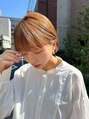 内巻き気味に巻いたぱっつんボブに少しだけ顔周りカットを。丸いシルエットが柔らかく優しく見せてくれます!少し明るめのまろやかベージュカラーもオススメです!ブリーチありはまろやかさは増すのでオススメです!【SOIE/ソワ/表参道/外苑前/明治神宮前】