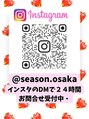 インスタ→ @season.osakaからDMでなりたいスタイルのお写真を送って頂けましたら最適なクーポンをお選びしてご予約をお取りします。ご予算やお日にち、お時間のご相談も24時間受付ていますのでお気軽にお問合せ下さい!ご来店心よりお待ちしています