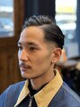 トップはパーマでバックに自然に流しています。サイドパートなど、あまりかっちりし過ぎないスタイルのため、メンテナンスなども楽です。サイドは0.8ミリからのフェードです。
