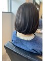 肩につく長さのボブ。重ためボブにトップにのみレイヤーを入れて動きも出せるスタイル。まとまりやすくカットしてあります。