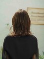 肩上のラインで切りっぱなしボブスタイルにカットして、表面に少しレイヤーを入れることで動きのあるボブスタイルになります。バングは透け感を出した甘すぎない抜け感のあるスタイルに。カラーはアッシュ系の赤みを抑えたブラウンに。スタイル名