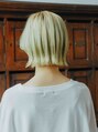ぱつっとカットしたハイトーンのボブスタイルになります。ハイトーンカラーで個性的な重過ぎない軽い印象にし、表面と顔まわりにしっかりレイヤーが入っているので全体的にすっきりとしたクールなイメージのボブスタイルになります。