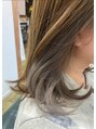 - 福島市/岡部/グレーブラウン/ハイレイヤーカット/前頭ブリーチ/マレットヘア/ヨシンモリ/白髪ぼかし