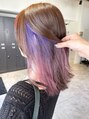 上はベージュカラーでインナーカラーはパープルからピンクのグラデーションに!普通のインナーカラーに飽きてしまった方におすすめです◎(ブリーチ履歴による)