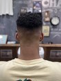 元々の癖を活かしてトップは短めのアフロ、周りは高めのフェードでメリハリをつけたスタイルです。元々が直毛の方でもある程度はパーマでも再現できますので、ご希望の際は一度当店にお電話ください。