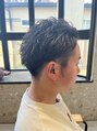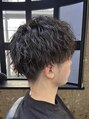 刈り上げでメリハリをつけた縦落ちのツイストスパイラルぱーまショートマッシュベースのカットにパーマで束感が出るように仕上げています。清潔感とトレンド感を両立したおすすめのスタイルです。