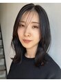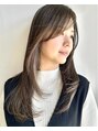 顔まわりにレイヤーを入れて動きと抜け感を。長さは残しつつ重く見せないバランス。薄めに流す前髪で色っぽさをプラス。ツヤ感ブラウンで透け感と立体感を演出します。