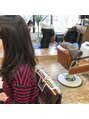 根元のリタッチカラー。透明感あるカラーで白髪もカバー。ラメラメトリートメントでヤワツヤ。毛量調整のメンテナンスカット。