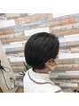 カット。手ぐしショート。トップとサイドを伸ばしながら、下を切りながら、今後パツっとボブにしていきます。