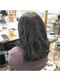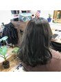 カット、カラー、ローライト、ラメラメトリートメント。下の長さはあまり変えずに、レイヤーカット。前回ハイライトを入れてて、今回ローライトをプラスして、明暗のバランス調整。インディゴとターコイズのミックス。