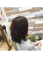 毛先と毛量のメンテナンスカット。暗めの艶々ピンクブラウン。いい感じのくせをいかして、ハンドドライ。