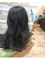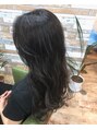 毛先とボリュームのメンテナンスカット。7、8センチ切らせて頂き、実習用に、仕上がり6レベル設定の、インディゴ×チャコールグレー。ブリーチの履歴があるので、いい感じに透明感ある暗髪に。