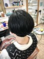 カット、ノンアルカリパーマ、ウルティアトリートメント。ノンブローカット。ショートボブ。大きめで毛先2回転のゆるパーマ。