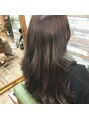 ヘアカラー、ポイントカット、シャンプーブロー。インディゴ×ライラックで、パープルアッシュに。ハイライトのところの色が特に良い色でした。