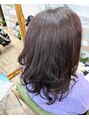 カット、水素カラー、水素トリートメント、ウルトラファインバブルヘッドスパ。レイヤースタイル。インディゴピンクに。w水素ケアで、自然な艶感、軽い質感でまとまり。抗酸化カラー。