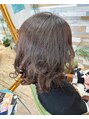 カット、マグネットデジタルパーマ、リタッチカラー。毛先とボリュームのメンテナンスカット。酸性よりの薬剤で毛先3回転の柔らかデジパー。カラーは伸びた根本のみ。