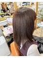 カット、極艶♪ウルティア修復マグネットカラー。下の長さを揃えて、量の調整。ワンレンにしながら伸ばしていくところ。カラーは前回ピンク系で、トーンは同じぐらいでサンドベージュをのせて、クリーミーピーチに。