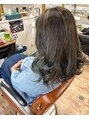 カット、シースルーハイライト×6、マグネットカラー。伸ばしやすく、ボリュームのメンテナンスカット。以前のハイライトも残ってて、表面にハイライトをプラス、チャコールグレーにジェイドをミックス。エメラルドグリーン×グレーの絶妙カラー