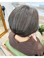 カット、シースルーハイライト×11、マグネットカラー。ノンブローカット。レイヤーショート。ノーパートではちうえにハイライトを入れて、ベースはカーキグレー。
