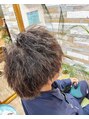 カット、ノンアルカリツイストパーマ、水素カラー、ウルトラファインバブルヘッドスパ。髪の毛を膨潤させない酸性の柔らか薬剤で、ハードパーマ。手触り柔らかく、からまりなし。水素カラーで抗酸化しながらリタッチカラー。