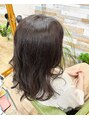 カット、極艶♪ウルティア修復マグネットカラー。毛先とボリュームのメンテナンスカット。レイヤースタイル。濃ゆめのカーキグレーで、暗髪に。暗めの寒色も◎