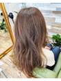 高濃度水素カラー、シャンプーブロー。明るめのパープルグレージュに。カラー剤に高濃度水素パウダーを混入、水素シャンプー、水素美容液、水素トリートメント使用の、抗酸化カラー。