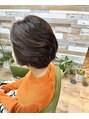 マグネットカラー、カット。ノンブローカット、前下がりショートボブ。ココアブラウン×クリーミーピーチで、艶々暖色カラー。