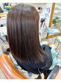 マグネット縮毛矯正、シャンプーブロー。1人1人の髪質に合わせた薬剤わを使用して、伸びてきた根本のみの髪質改善縮毛矯正。