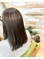 カット、ポイント縮毛矯正、ヴアリジョアカラー。前髪~耳前ぐらいのポイント縮毛矯正。毛先のメンテナンスカット。透明感抜群のチャコールグレーカラーに。前回入れたハイライトもいい仕事してます☆