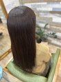 カット、ヴァリジョアカラー。毛先とボリュームと顔まわりの調整カット。チョコレートブラウンでトーンダウンしながら、ツヤツヤブラウンに。骨格構築×髪質矯正×水分保持しながらツヤツヤに。