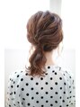 ミディアムスタイルに髪を緩く巻いて一つに結ぶだけで簡単に可愛くなりますよ♪