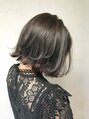 切りっぱなしのボブに、インナーはブリーチしてイルミナカラーのトワイライト、トップはオーシャンとオーキッドでグレージュに【上野/東上野】