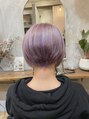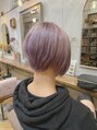 ブリーチ2~3回のベースで淡いパープルシルバーです。オレンジ味がなくなるまでしっかりブリーチしてオンカラーしているので、紫シャンプーでキープできます。