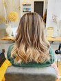 バレイヤージュで筋感を出しつつ毛先を明るくブリーチしています。エアタッチでぼかしながら明るくしているので、根本が伸びてきても気になりにくいデザインになります。
