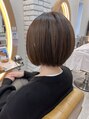 コンパクトなミニボブ(^^)えりあしがスッキリ見えるようにカットしています!細めのハイライトが入っているので白髪ぼかしやカラーが伸びてきても気になりにくいです!!