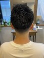 定番のツーブロックで刈り上げ部分を3ミリで刈り上げ、はち周りのボリュームがでやすいところをタイトになるようにカットした、ツーブロックショートです。