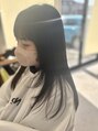顔まわりを短くカットし、レイヤーを入れたマッシュウルフスタイル。暗髪でも毛先の動きを出す事で重くなり過ぎないようにしました。