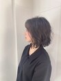 パーマスタイル。切りっぱなしの抜け感をだしたオシャレなニュアンス、前髪もかけて垢抜けもバッチリです。