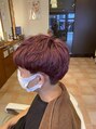 しっかり脱色をしてからのボルドーカラー地毛の色を抜いておくことで着色一回でもきれいな発色が見込めます