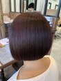ピンクパープル×前下がりボブ