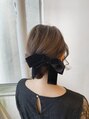 お呼ばれ・結婚式・パーティーに◎リボンを使った大人可愛いヘアアレンジお任せください。黒ベロアリボン+1100円でお店にご用意あります。