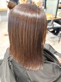 <縮毛矯正×ミディアムヘア>ツンとした仕上がりにならない、なめらかな手触りが持ち味。#縮毛矯正#酸性縮毛矯正#酸性ストレート#ストレートパーマ#艶髪#ミルボントリートメント#TOKIOトリートメント#透明感カラー#髪質改善トリートメント